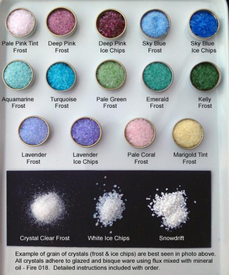 | Embellishing Crystals for Bisque and Glazed Porcelain Adhere with mineral oil and flux, fire 018. Instructions included with each .5 oz bag) |